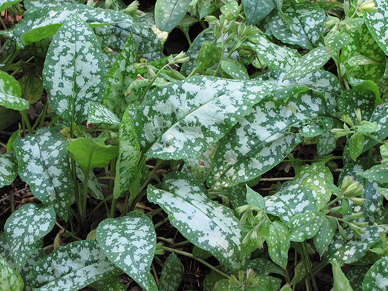 British Sterling Lungwort will grow to be about 12 inches tall at maturity, with a spread of 24 inches. When grown in masses or used as a bedding plant, individual plants should be spaced approximately 20 inches apart. Its foliage tends to remain dense right to the ground, not requiring facer plants in front. It grows at a medium rate, and under ideal conditions can be expected to live for approximately 10 years. As an herbaceous perennial, this plant will usually die back to the crown each winter, and will regrow from the base each spring. Be careful not to disturb the crown in late winter when it may not be readily seen!