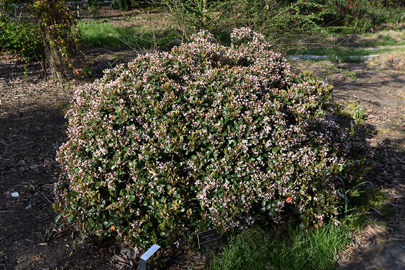 Eleanor Taber™ Indian Hawthorn features showy clusters of shell pink flowers at the ends of the branches from late winter to early spring. It has attractive dark green evergreen foliage which emerges antique red in spring. The glossy oval leaves are highly ornamental and turn burgundy in the fall, which persists throughout the winter.