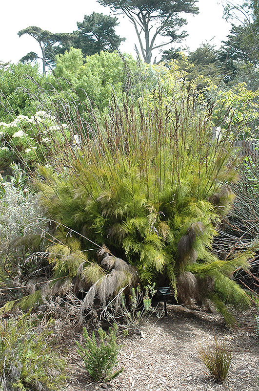 Upright growing, clump forming, arching grass-like plant with stems bearing tight whorls of branchlets of very fine foliage; female flowers are pink and male flowers are brown; a truly exotic presentation as a garden accent or along borders