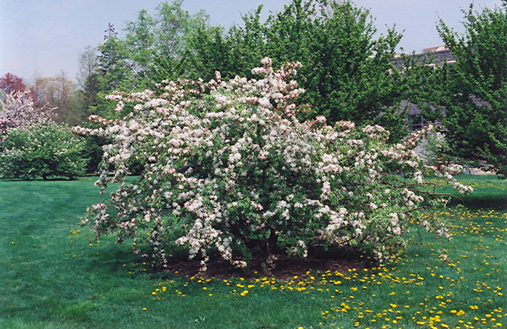 A stunning ornamental bathed in showy white flowers in spring and colorful red fruit in fall, pendant habit of growth; makes an ideal accent for the front yard or mixed garden composition, needs well-drained soil and full sun