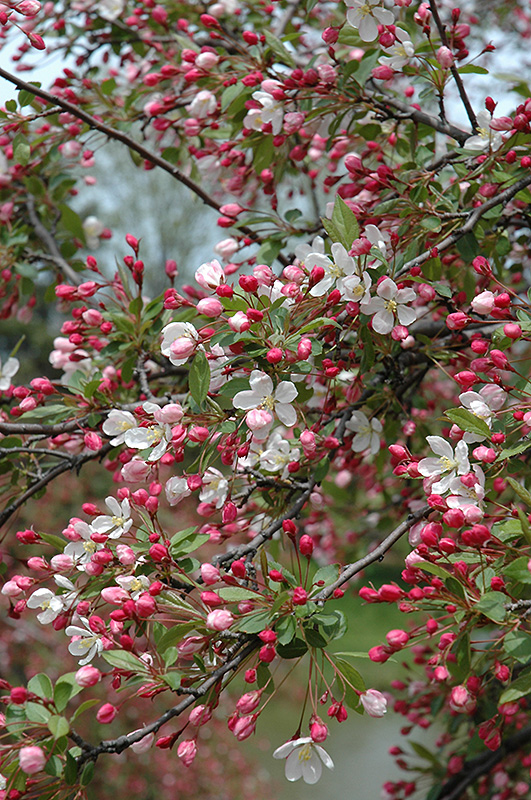White Cascade Flowering Crab is blanketed in stunning clusters of fragrant white flowers along the branches in mid spring, which emerge from distinctive rose flower buds before the leaves. The fruits are showy lemon yellow pomes carried in abundance in early fall. It has dark green deciduous foliage. The pointy leaves turn yellow in fall.