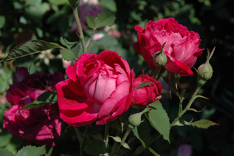 Eugene de Beauharnais Rose features showy fragrant fully double purple round flowers at the ends of the branches from late spring to early fall. The flowers are excellent for cutting. It has green deciduous foliage. The glossy oval compound leaves do not develop any appreciable fall colour.